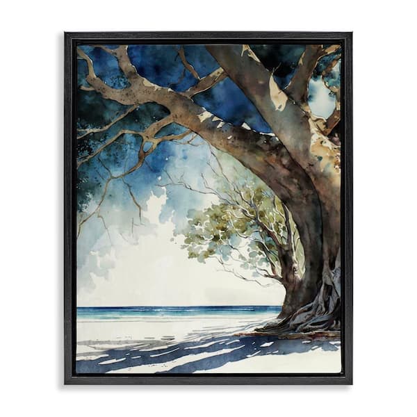 Looming Tree on Coast by Svetlana Aleynikova Black Floater Frame Nature Graphic Art Print 31 in. x 25 in.