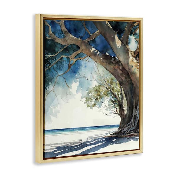 Looming Tree on Coast by Svetlana Aleynikova Gold Floater Frame Nature Graphic Art Print 31 in. x 25 in.