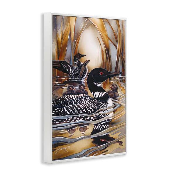 Loon Family Among Pond Ripples by Jody Bergsma White Framed Animal Giclee Art Print 30 in. x 20 in.