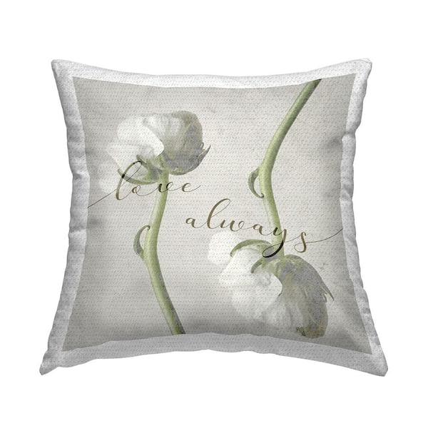 Love Always Phrase Asymmetrical White Rose Blossoms Grey Square Outdoor Throw Pillow