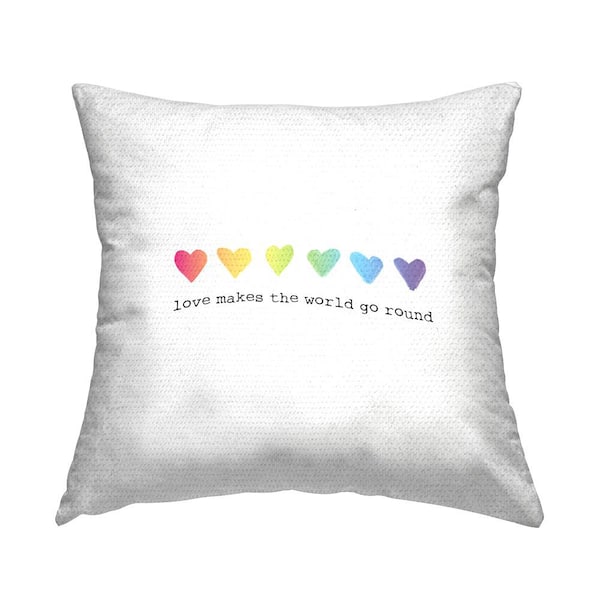 Love Makes World Go Round Rainbow Heart Ombre White Square Outdoor Throw Pillow
