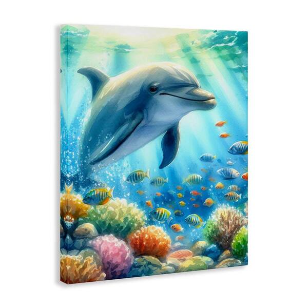 Majestic Dolphin Underwater by LSR Design Studio Unframed Coastal Graphic Art Print 20 in. x 16 in.