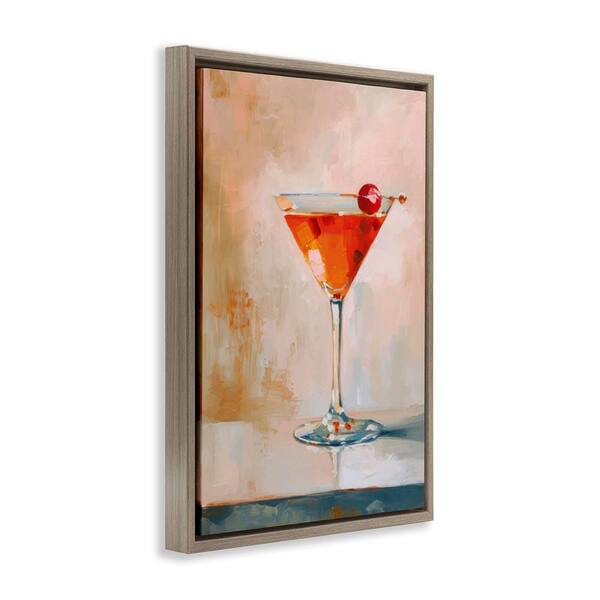 Manhattan Cocktail with Cherry by LSR Design Studio Brown Floater Frame Food Graphic Art Print 31 in. x 21 in.