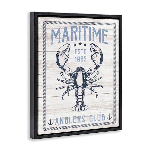 Maritime Anglers Club by Angela Nickeas Black Floater Frame Coastal Graphic Art Print 31 in. x 25 in.