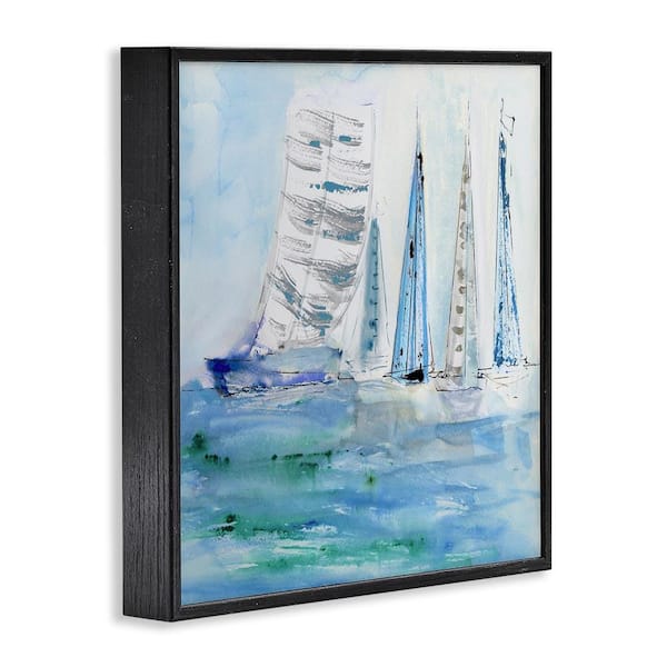 Maritime Outlined Sailboats by Val Rhodes Black Framed Typography Giclee Art Print 12 in. x 12 in.