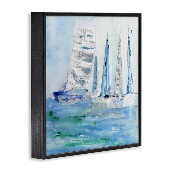 Maritime Outlined Sailboats by Val Rhodes Black Framed Typography Giclee Art Print 17 in. x 17 in.