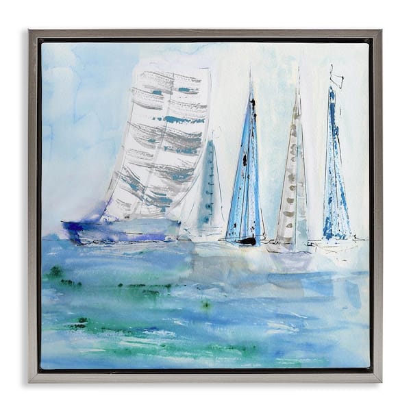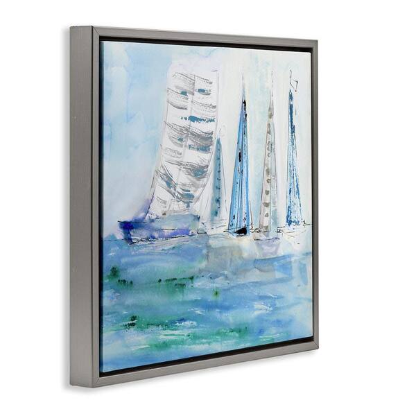 Maritime Outlined Sailboats by Val Rhodes Gray Floater Frame Typography Graphic Art Print 25 in. x 25 in.