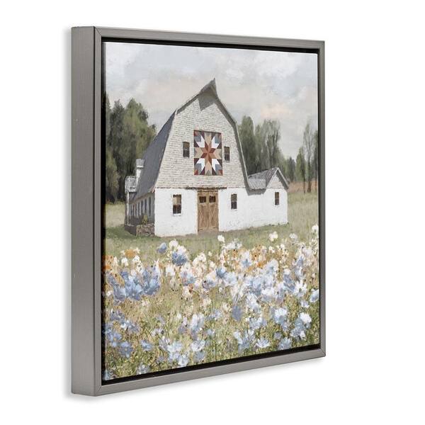 Meadow View & Barn by Amber Sterling Gray Floater Frame Nature Graphic Art Print 25 in. x 25 in.