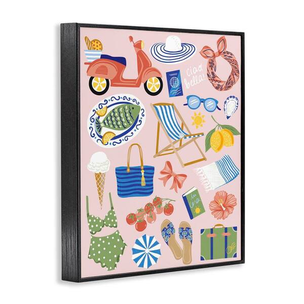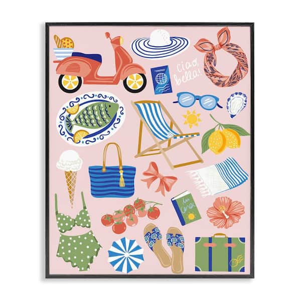 Mediterranean Coast Necessities by Arrolynn Weiderhold Black Framed Coastal Giclee Art Print 14 in. x 11 in.