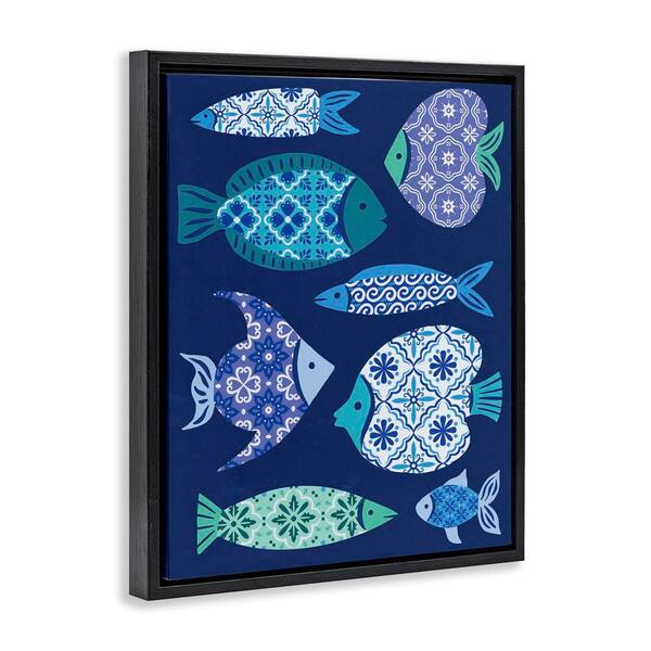 Mediterranean Tiles Fish by Deborah Curiel Black Floater Frame Animal Graphic Art Print 21 in. x 17 in.