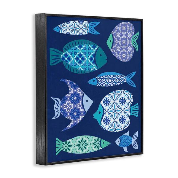 Mediterranean Tiles Fish by Deborah Curiel Black Framed Animal Giclee Art Print 14 in. x 11 in.