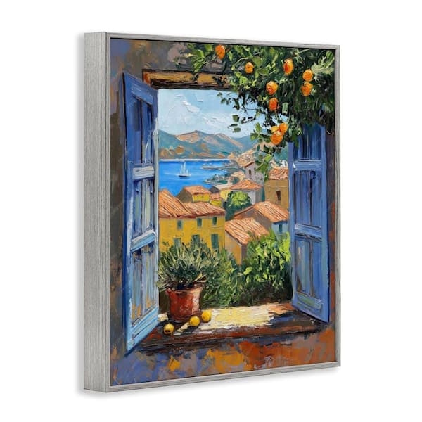 Mediterranean Window View by LSR Design Studio Gray Framed Architecture Giclee Art Print 14 in. x 11 in.