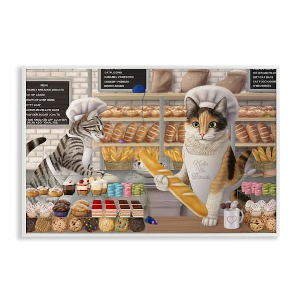 Meow Bakery Funny Cats by Mehu Art White Framed Food Giclee Art Print 20 in. x 30 in.