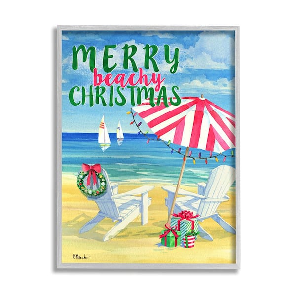 Merry Beachy Christmas by Paul Brent 1-Piece Framed Graphic Print Typography Poster Art Print 14 in. x 11 in.