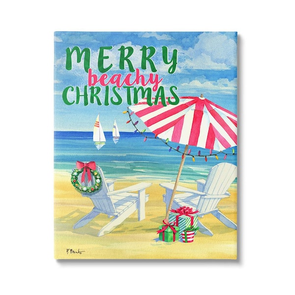 Merry Beachy Christmas by Paul Brent 1-Piece Unframed Graphic Print Typography Poster Art Print 20 in. x 16 in.