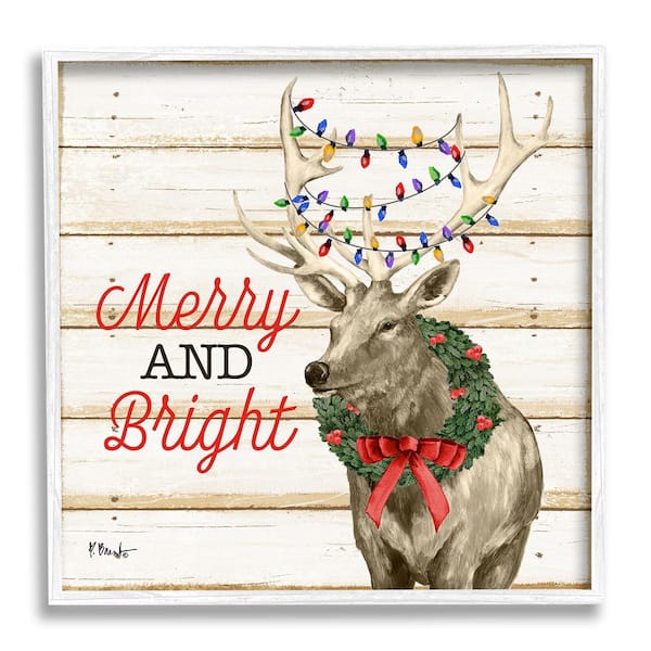 Merry & Bright Deer by Paul Brent 1-Piece Framed Graphic Print Animal Poster Art Print 24 in. x 24 in.