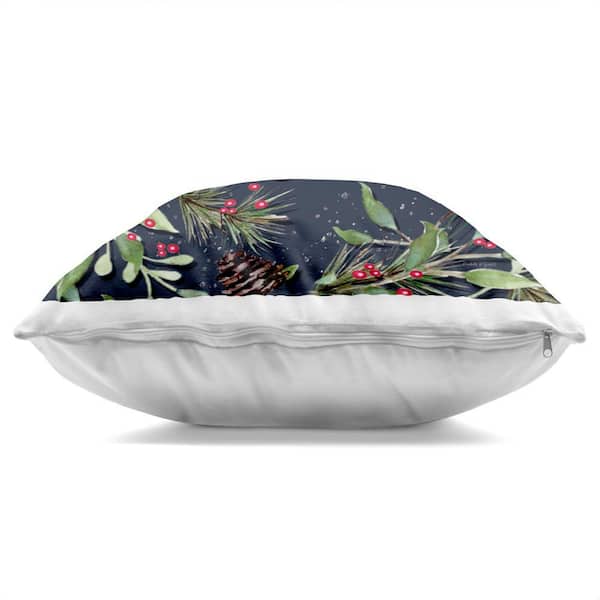 Merry & Bright with Holly Leaves Black Abstract Polyester 18 in. X 18 in. Throw Pillow