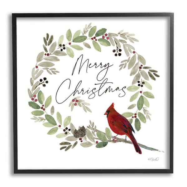 Merry Christmas Cardinal by Kate Sherrill 1-Piece Framed Graphic Print Nature Poster Art Print 17 in. x 17 in.
