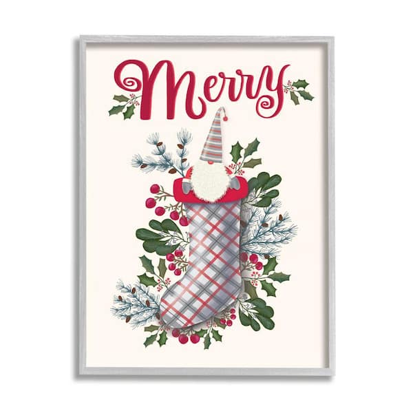 Merry Christmas Gnome Plaid Holly Stocking By Darlene Seale Framed Print Abstract Texturized Art 16 in. x 20 in.