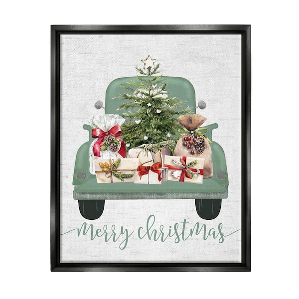Merry Christmas Truck by Lettered and Lined 1-Piece Floater Frame Graphic Print Travel Poster Art Print 31 in. x 25 in.