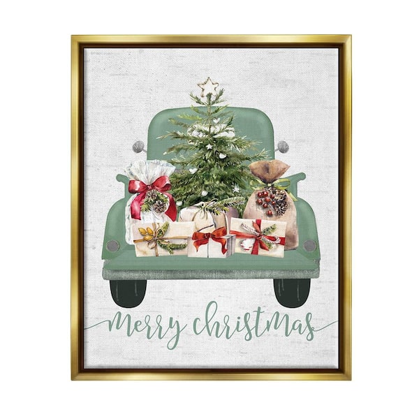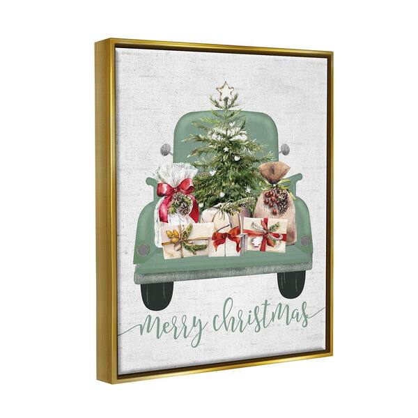 Merry Christmas Truck by Lettered and Lined 1-Piece Floater Frame Graphic Print Travel Poster Art Print 31 in. x 25 in.