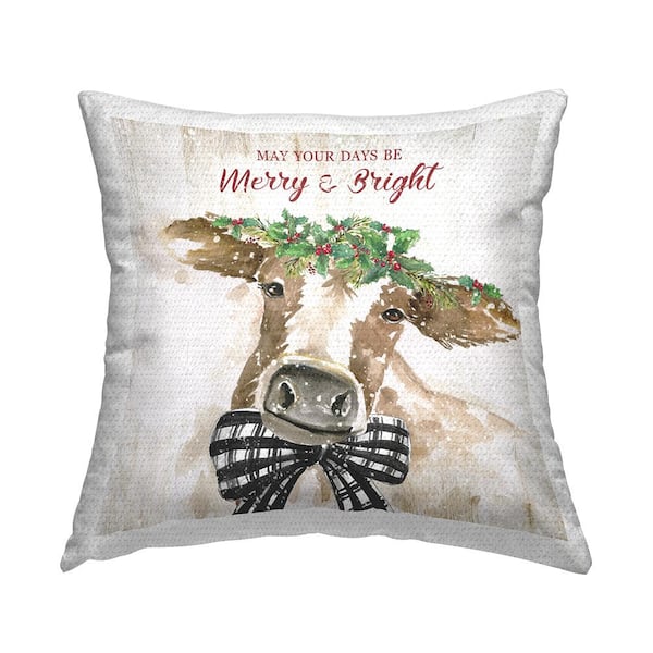 Merry and Bright Country Cattle Tan Square Outdoor Throw Pillow