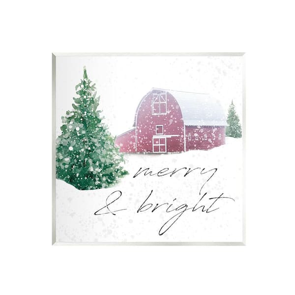 Merry and Bright Snowy Barn by Carol Robinson 1-Piece Unframed Graphic Print Typography Poster Art Print 12 in. x 12 in.