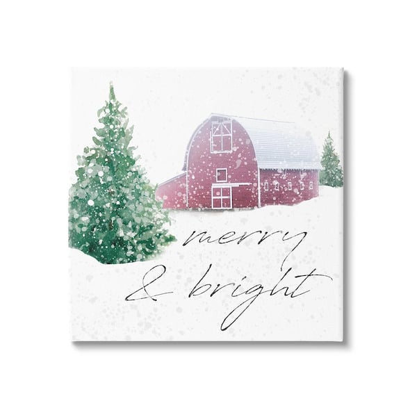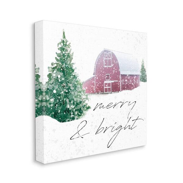 Merry and Bright Snowy Barn by Carol Robinson 1-Piece Unframed Graphic Print Typography Poster Art Print 36 in. x 36 in.