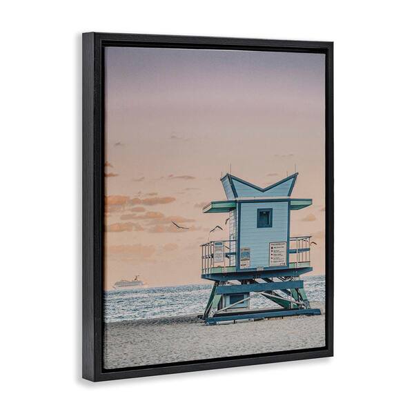 Miami Lifeguard Stand by LSR Design Studio Black Floater Frame Coastal Graphic Art Print 31 in. x 25 in.