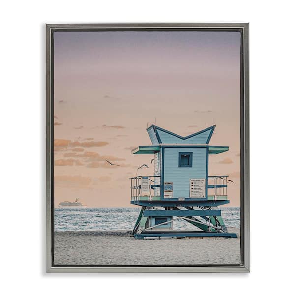 Miami Lifeguard Stand by LSR Design Studio Gray Floater Frame Coastal Graphic Art Print 31 in. x 25 in.
