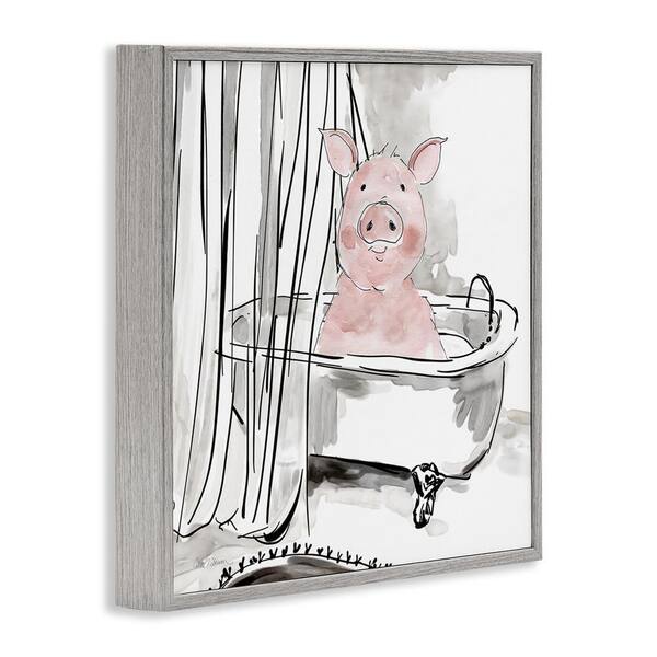 Minimal Bathtub Piggy by Carol Robinson Gray Framed Animal Giclee Art Print 12 in. x 12 in.