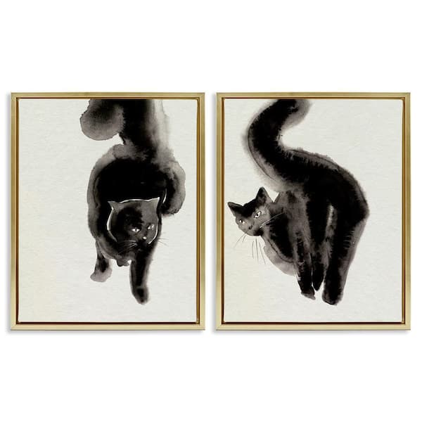 Minimal Black Cats by Melissa Wang 2-Pieces Gold Floater Frame Animal Graphic Art Print 31 in. x 25 in.