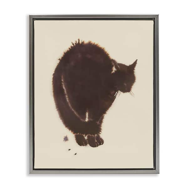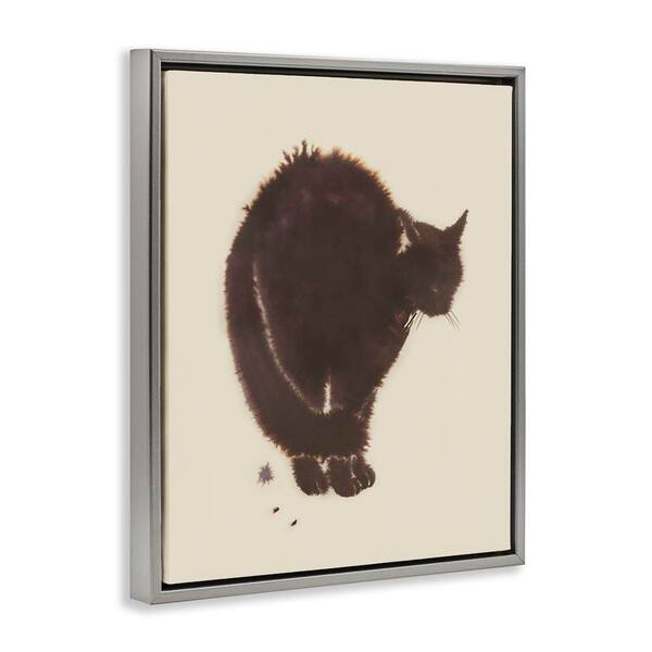 Minimal Cat on Beige by Grace Popp Gray Floater Frame Animal Graphic Art Print 31 in. x 25 in.