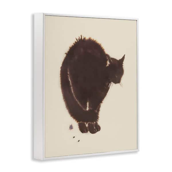 Minimal Cat on Beige by Grace Popp White Framed Animal Giclee Art Print 30 in. x 24 in.