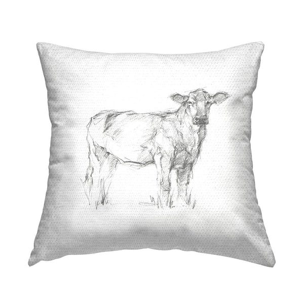 Minimal Cow Sketch Style White Square Outdoor Throw Pillow