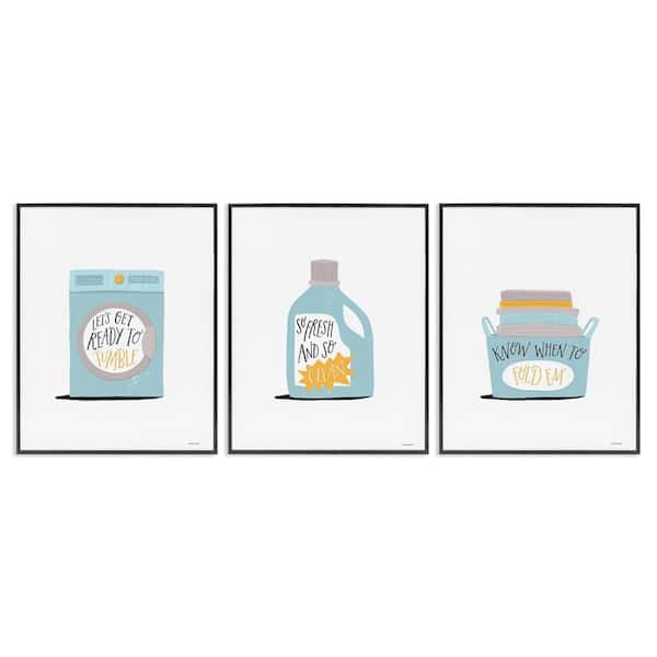 Minimal Laundry Phrases by Rachel Nieman 3 Pieces Black Framed Typography Giclee Art Print 30 in. x 24 in.