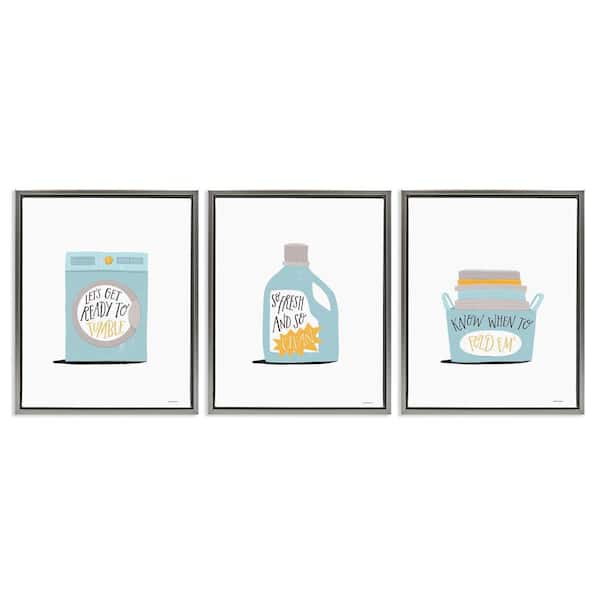 Minimal Laundry Phrases by Rachel Nieman 3 Pieces Gray Floater Frame Typography Graphic Art Print 31 in. x 25 in.