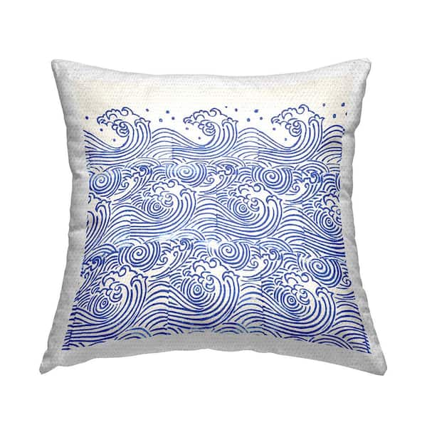 Minimal Sea Wave Pattern Blue Square Outdoor Throw Pillow