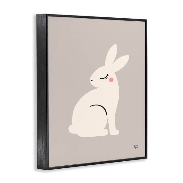 Minimal White Rabbit by Jessica Beck Black Framed Animal Giclee Art Print 20 in. x 16 in.