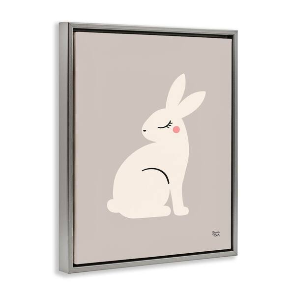 Minimal White Rabbit by Jessica Beck Gray Floater Frame Animal Graphic Art Print 21 in. x 17 in.