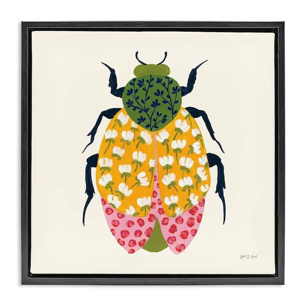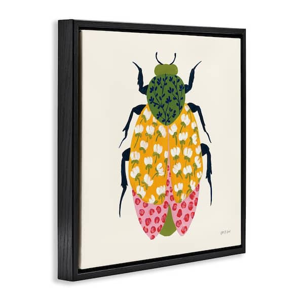 Mixed Blooms Beetle by Yvette St. Amant Black Floater Frame Animal Graphic Art Print 18 in. x 18 in.