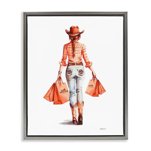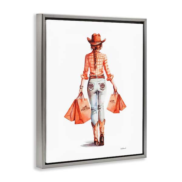 Modern Chic Cowgirl by Amanda Greenwood Gray Floater Frame People Graphic Art Print 31 in. x 25 in.