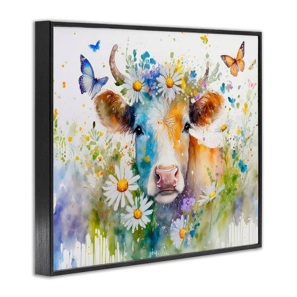 Modern Cottage Cow by Alina Georgescu Black Framed Animal Giclee Art Print 11 in. x 14 in.