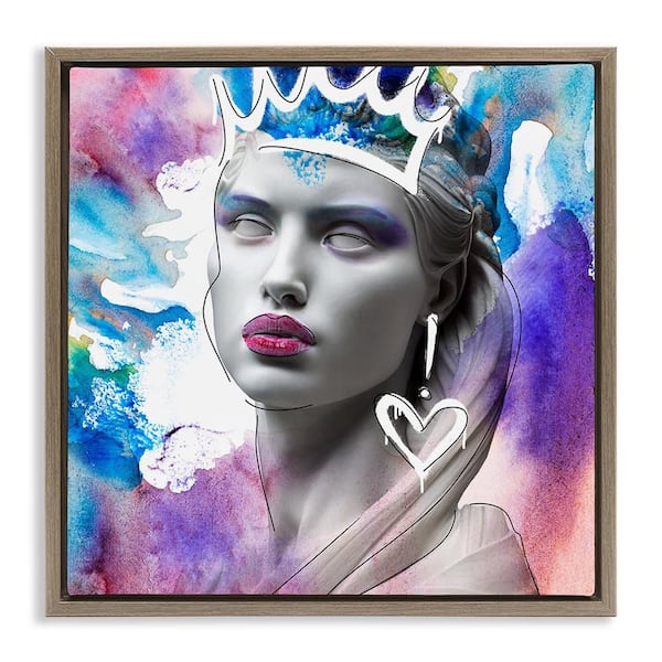 Modern Crowned Woman by CAD Designs Brown Floater Frame People Graphic Art Print 25 in. x 25 in.