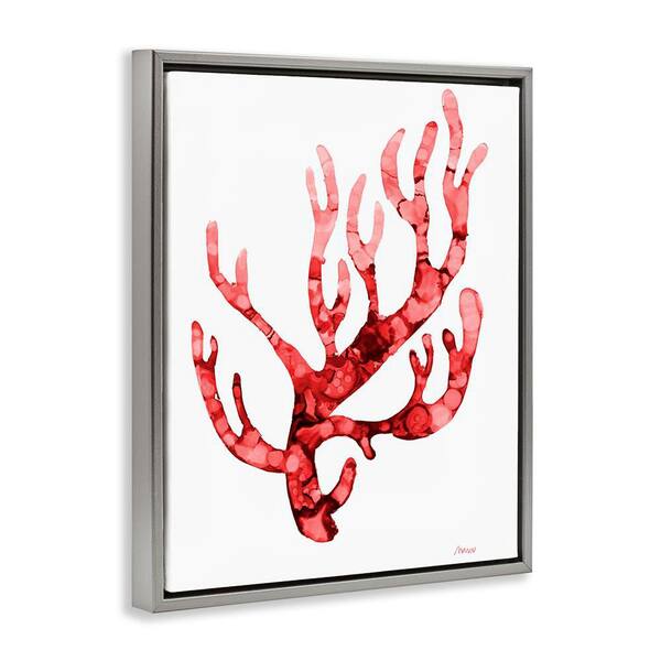 Modern Curved Coral by Patti Mann Gray Floater Frame Coastal Graphic Art Print 21 in. x 17 in.