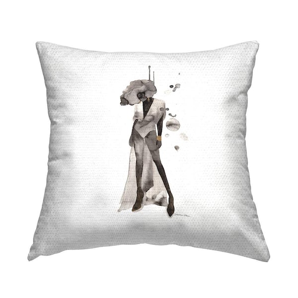 Modern Fashion Silhouette Grey Square Outdoor Throw Pillow