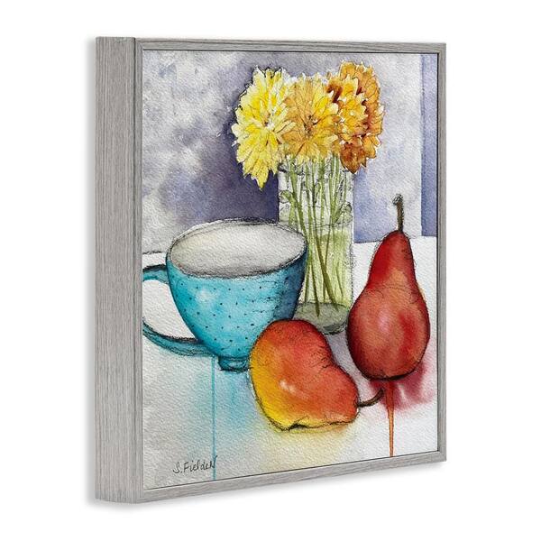 Modern Kitchen Teacup and Fruit by Stephanie Fielden Gray Framed Country Giclee Art Print 17 in. x 17 in.