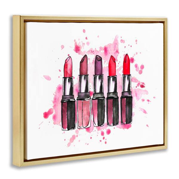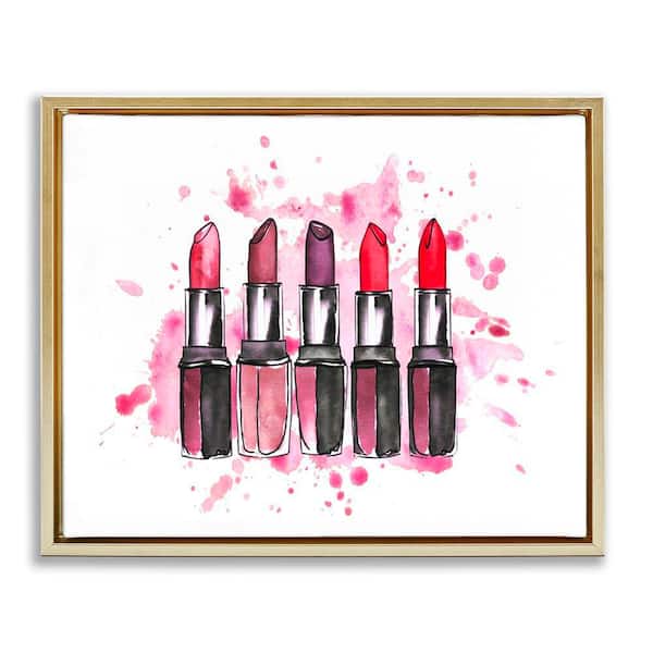 Modern Splatter Lipstick by Svetlana Aleynikova Gold Floater Frame Abstract Graphic Art Print 17 in. x 21 in.