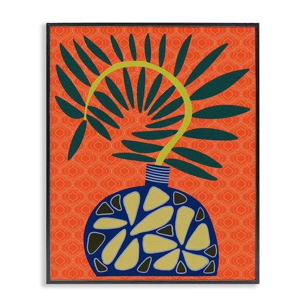 Modern Vase on Orange by Regina Moore Black Framed Nature Giclee Art Print 20 in. x 16 in.