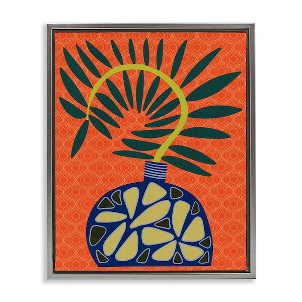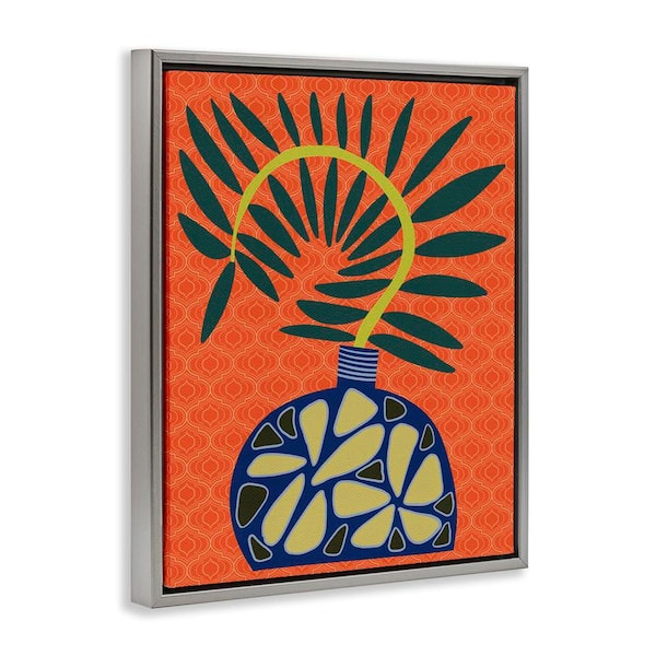 Modern Vase on Orange by Regina Moore Gray Floater Frame Nature Graphic Art Print 31 in. x 25 in.